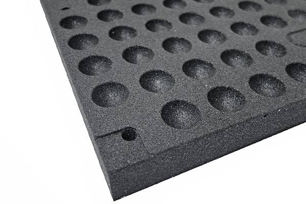 裏面の特殊な凹凸加工により振動・騒音を軽減し、高重量の物を落とした時に床に響かなくなっております。