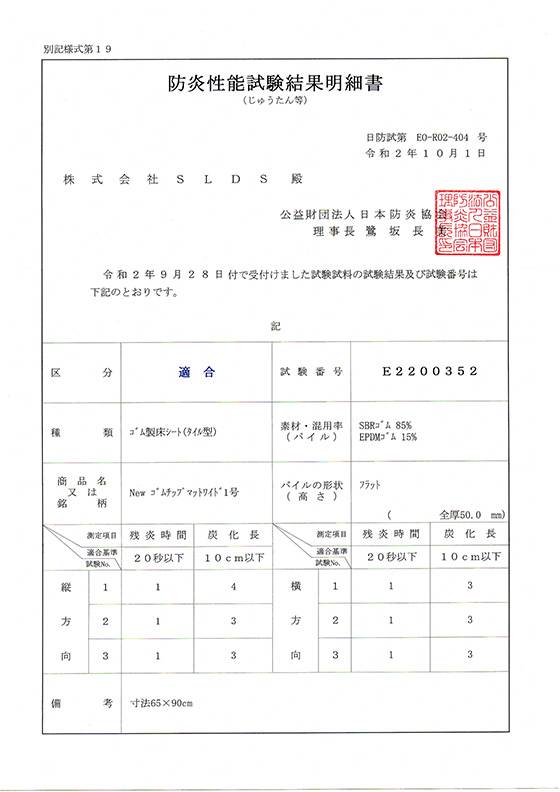 《Newゴムチップマットワイド》 は公益財団法人日本防炎協会の認定試験を合格し、