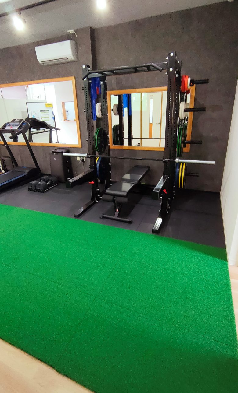 愛知県豊川市 「ギア鍼灸接骨院」様(インサイゴムマット他) 2022.07.20 最終更新日時 : 2025.08.17 sldswp 愛知県豊川市 『ギア鍼灸接骨院』様 ・インサイゴムマットH20mm JL-Y01(ブラック) ・ラバーターフH22mm を敷いていただきました。 ■ラバーターフ 人工芝とゴムマットを一体化させたマットです♪ W 500×L 1000mm×H 22mm(芝12mm×マット10mm)重さ:7.5kg/枚